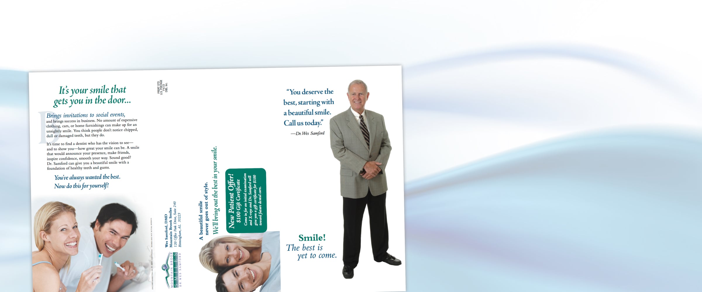 Direct mail is successful when it gets noticed in the right mailbox, includes an attractive offer, and motivates your target audience to call for an appointment. That’s why we purchase a customized list based on your practice demographics in order to focus on the patients you want to attract, including affluent families, middle income neighborhoods, or senior citizens. Then we do the professional design and copywriting that will bring in not just quantity, but quality patients.